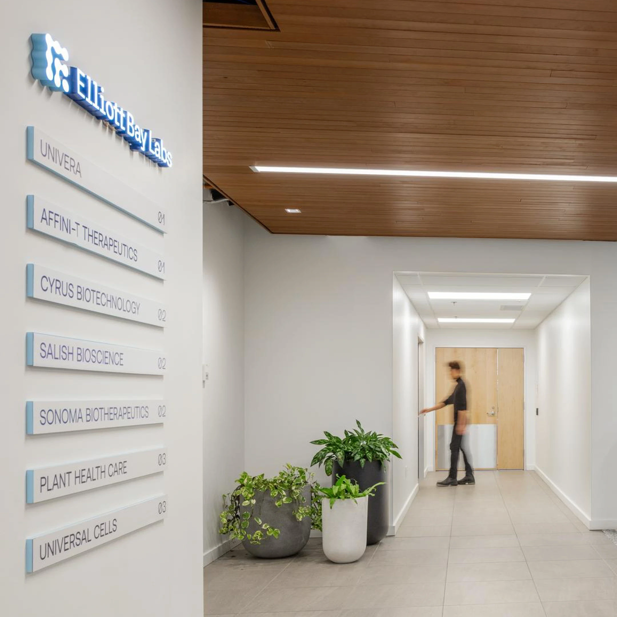 Elliott Bay Labs needed a cohesive identity and navigation system for its life-science development. I built the brand around a generative cell motif: a circular unit that scales, multiplies, and forms complex structures. The system pairs geometric typography with a palette that balances moody tones and vibrant accents. A wave-based graphic layer adds texture and anchors the identity to the building’s bayside location.